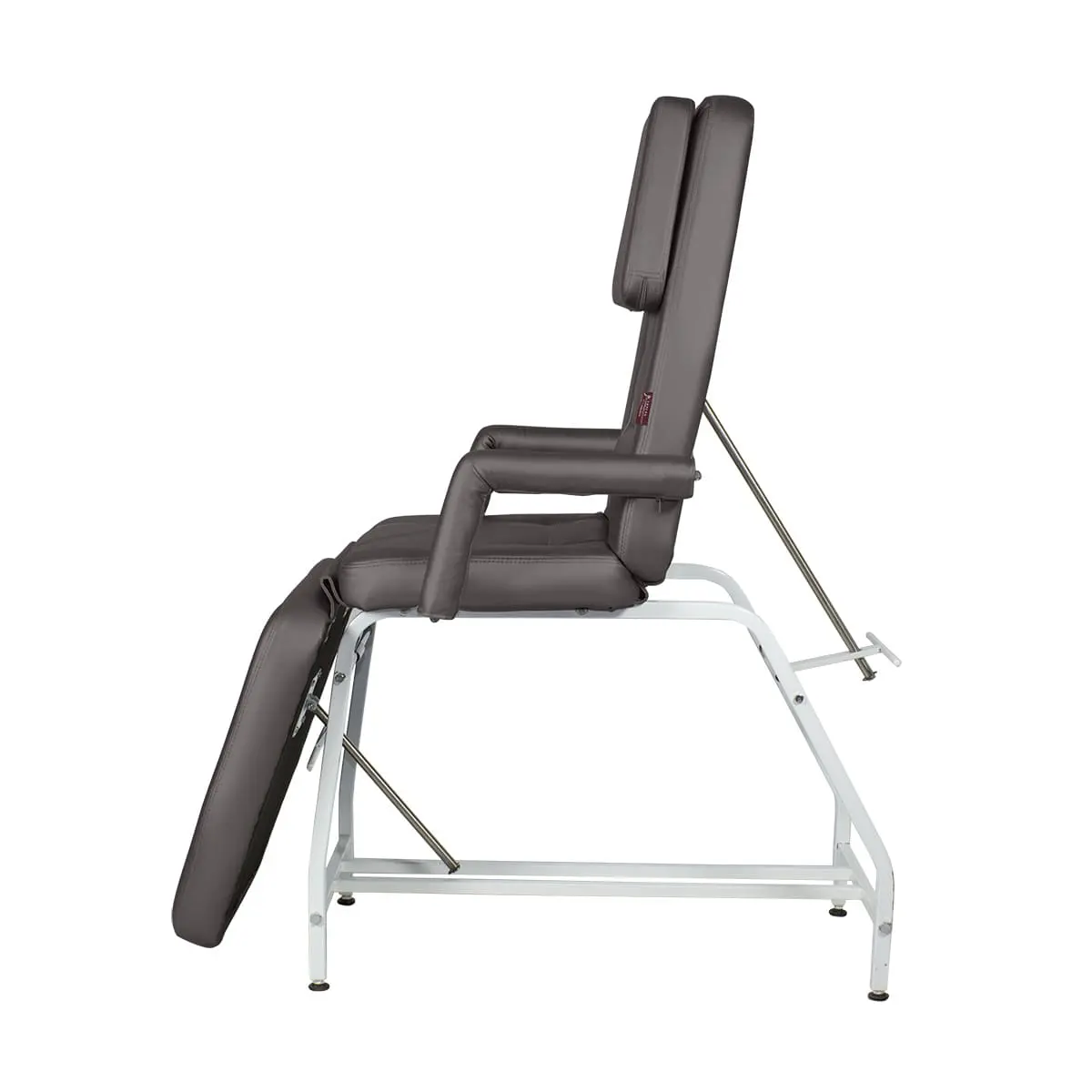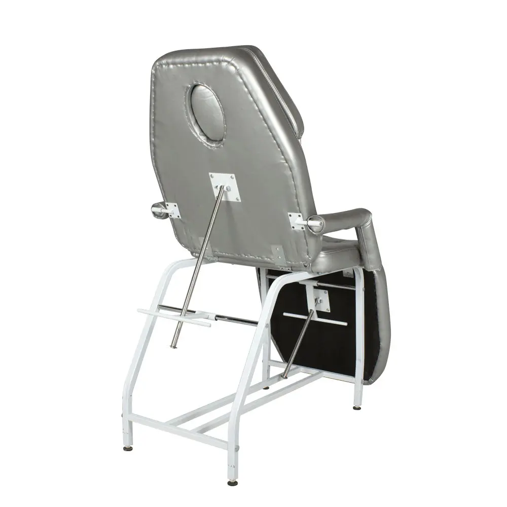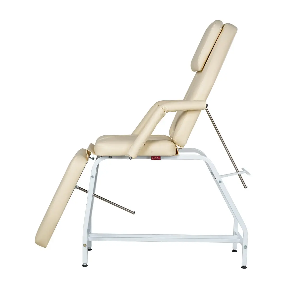 При обустройстве кабинета оборудование должно гармонировать с палитрой интерьера, поэтому мы предлагаем купить косметологическую кушетку Релакс в одном из цветов складкой программы (белый матовый, серебро, слоновая кость), или заказать в другом цвете или комбинации цветов из каталога обивочных материалов. Практичная конструкция косметологической кушетки Релакс от магазина МЭДИСОН позволяет оказывать широкий спектр как косметологических, так и массажных услуг. В спинке имеется отверстие для лица. Положение спинки и ножной части регулируется механически.