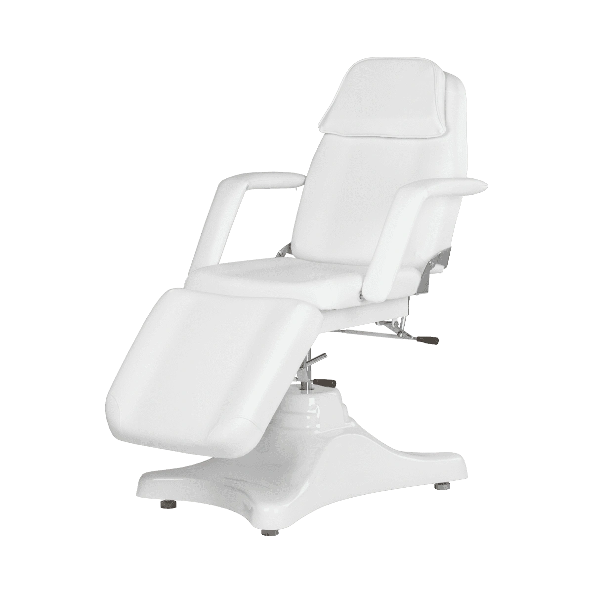 - Удобство – кресло имеет регулируемые подлокотники, подголовник и подножку, что обеспечивает комфортное положение клиента во время процедуры.