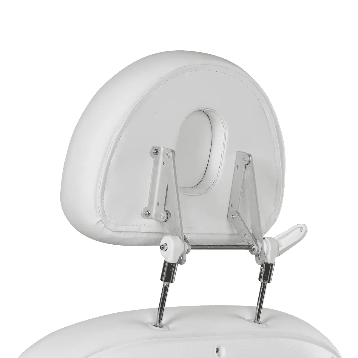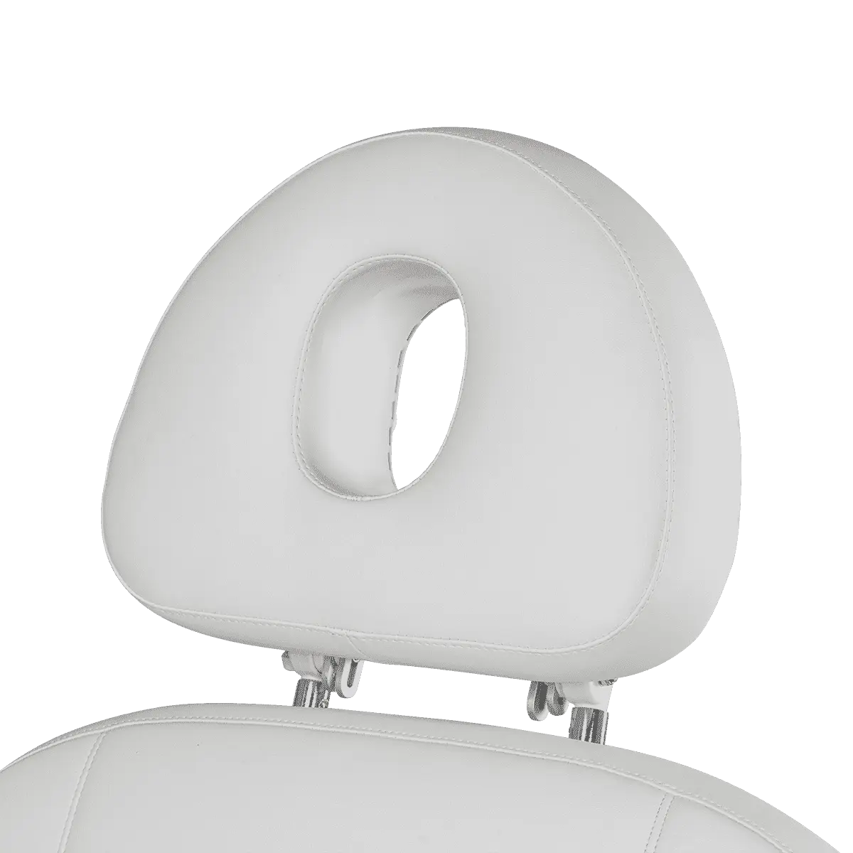 Мягкие элементы изготовлены из плотного поролона, который обладает эффектом памяти, что гарантирует максимальный комфорт и расслабление Вашим клиентам во время процедур. Обшивка сделана из экологически чистого и качественного материала – экокожи. Купить косметологическое кресло МД-848-4, Белый можно под любой дизайн интерьера. Подголовник с отверстием для лица регулируется по высоте и в горизонтальной плоскости.