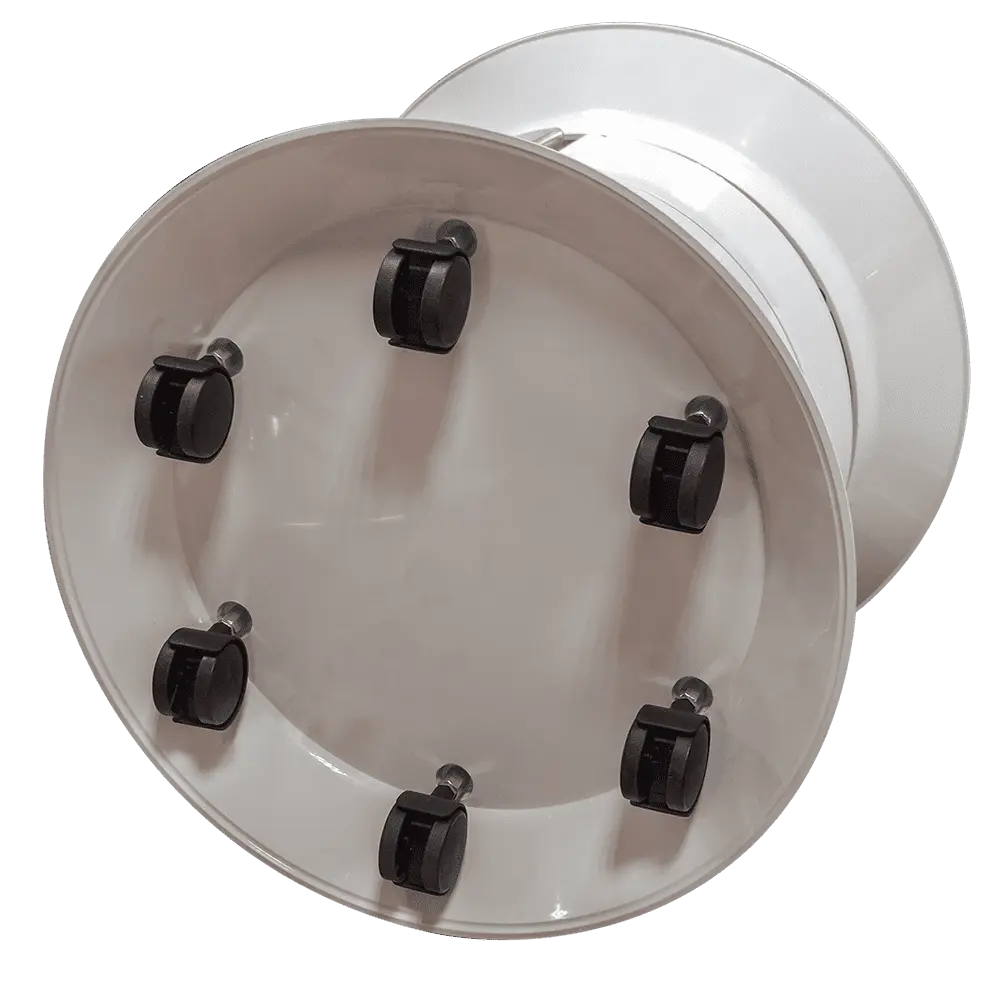 Ящики из пластика выдерживают механические повреждения, чистку моющими и дезинфицирующими средствами. Ящики вращаются вокруг стального профиля. Металл покрыт порошковой краской для предотвращения коррозии. Пластмассовые колеса не повредят пол и предотвратят скольжение тележки.
