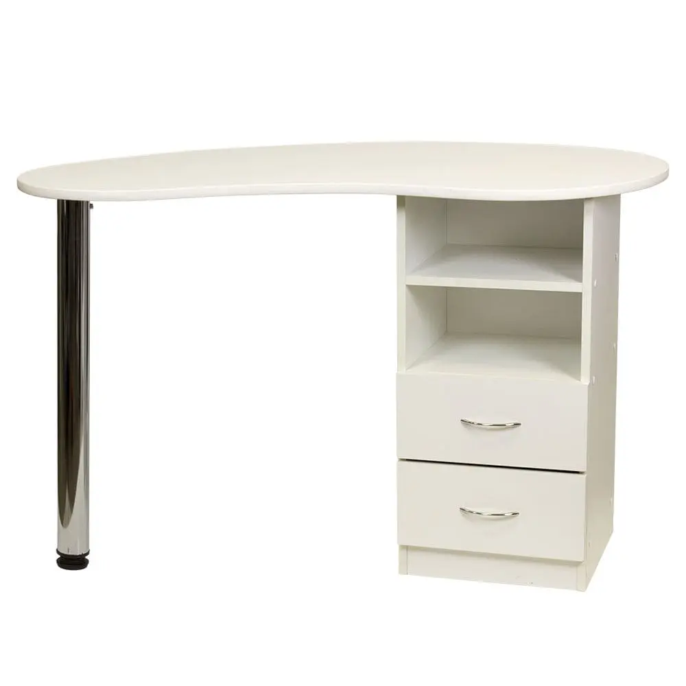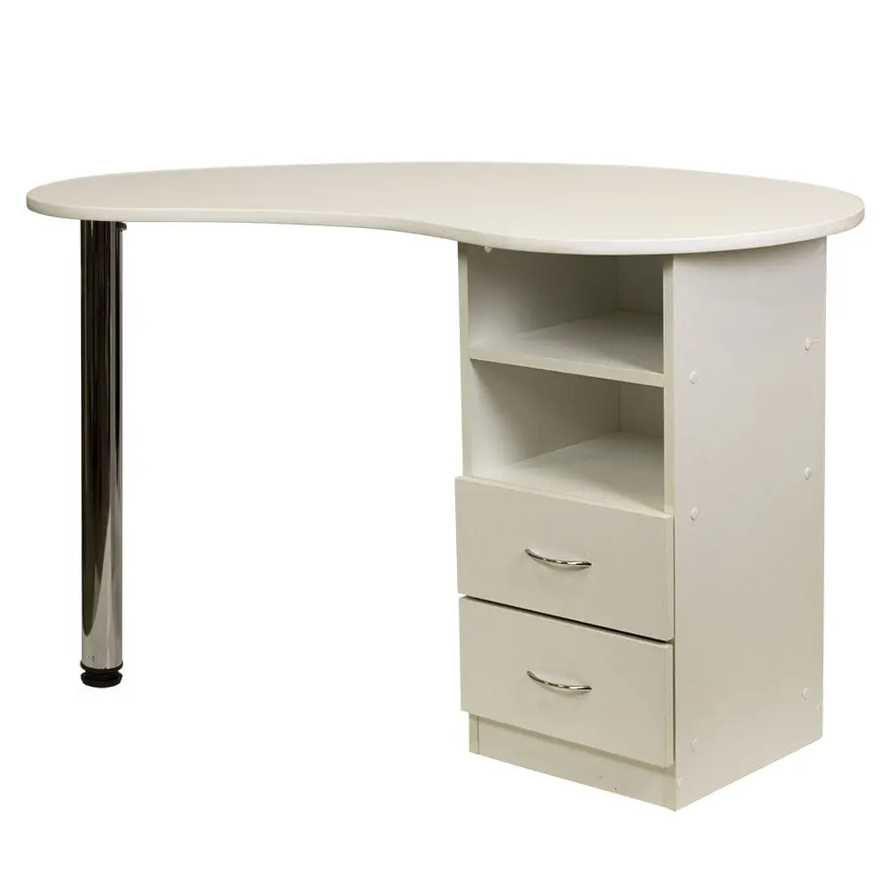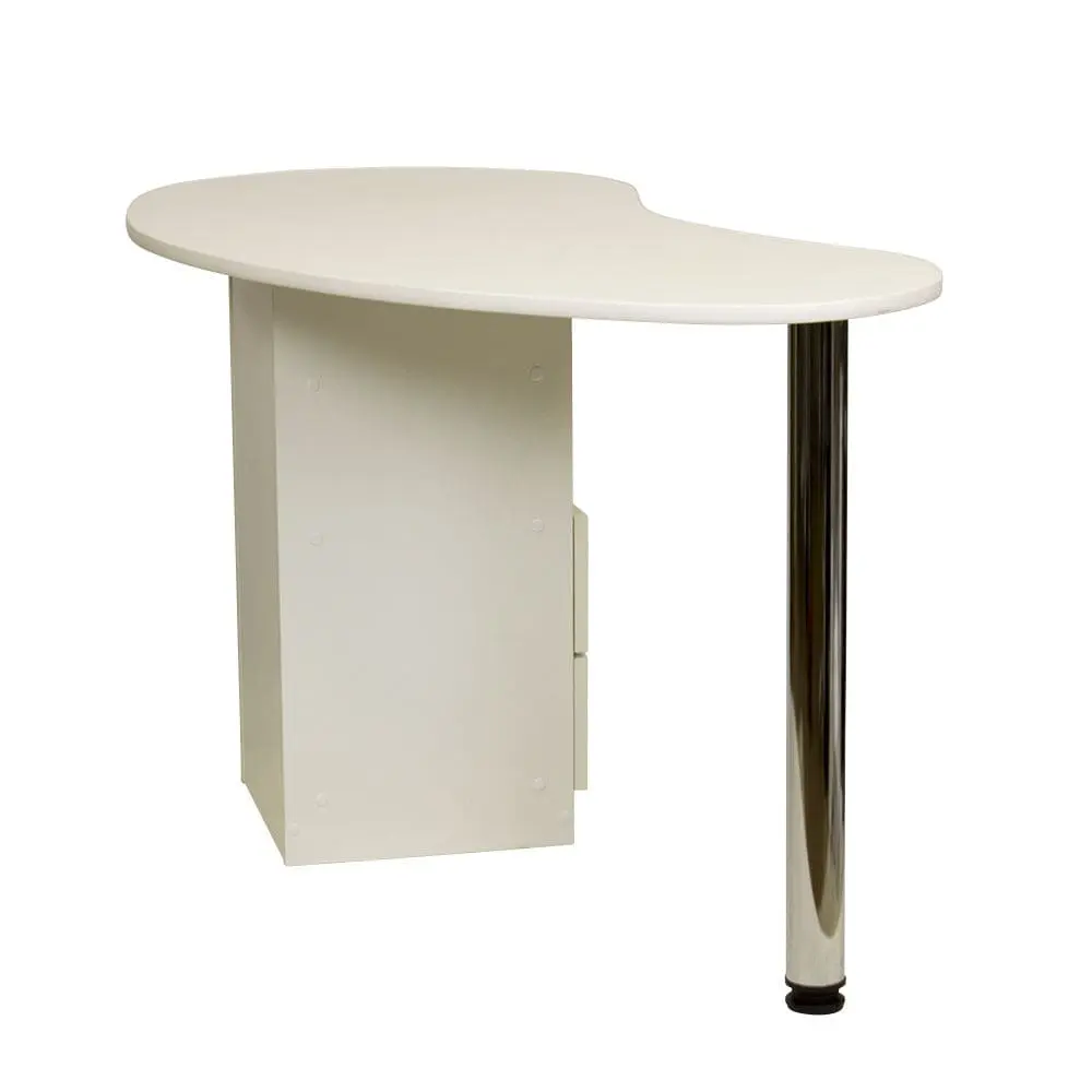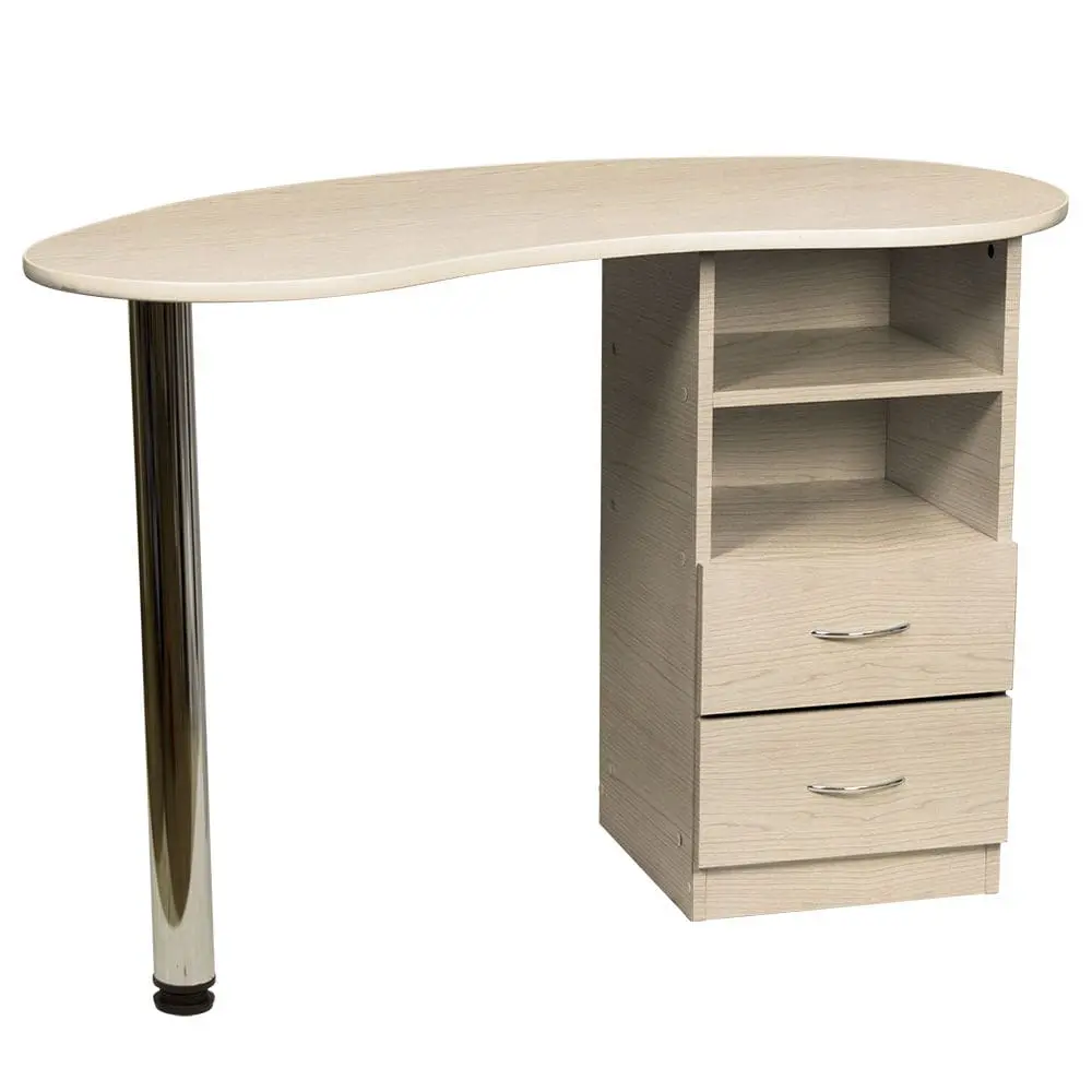 Маникюрный стол Катрин от производителя МЭДИСОН имеет удобные размеры и продуманную форму для правильной организации рабочего места мастера по маникюру. Для его производства применяются листы прочной ламинированной ДСП, поверхность которой устойчива к обработке дезинфицирующими средствами. Цвет ЛДСП можно выбрать из доступных 14 вариантов. Столешница с закругленными углами, со стороны специалиста плавный изгиб для удобства во время работы. Для защиты от механических повреждений столешница окантована гибким пластиком.