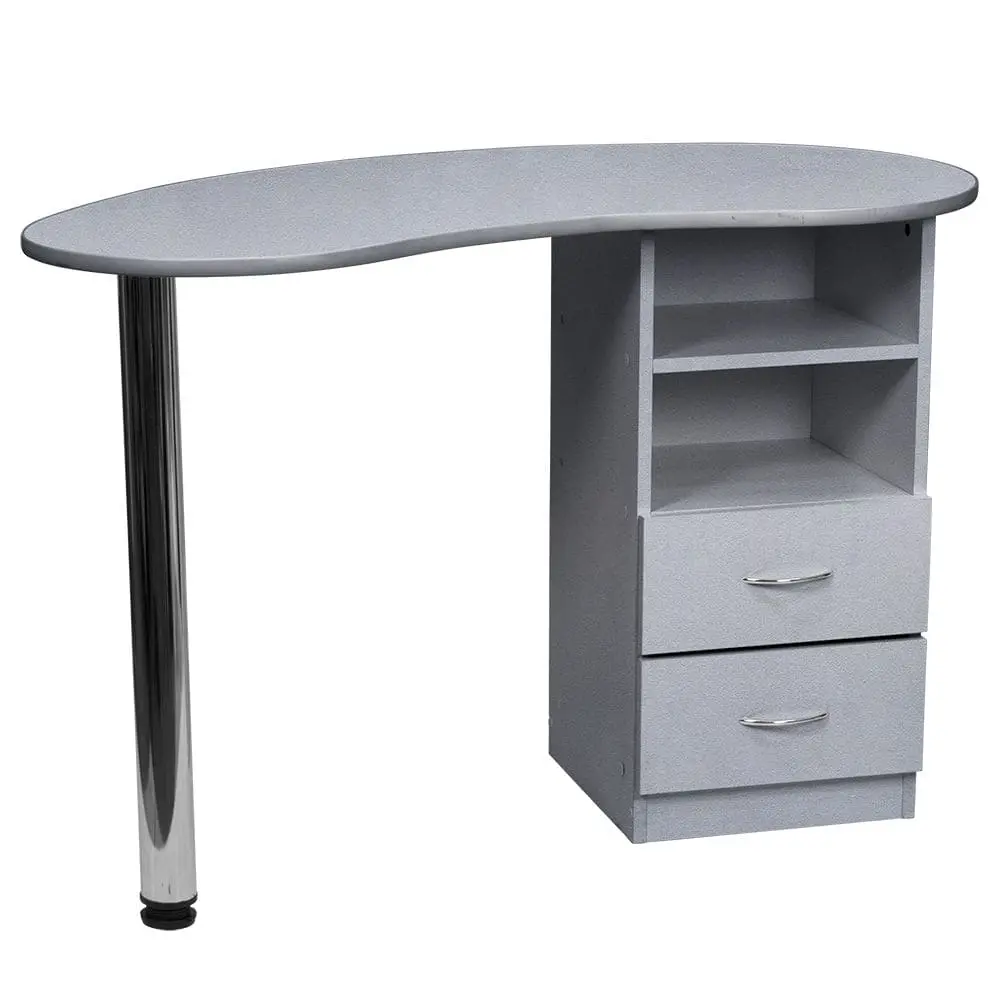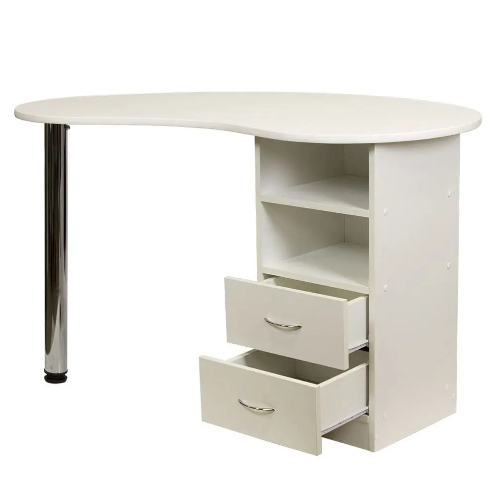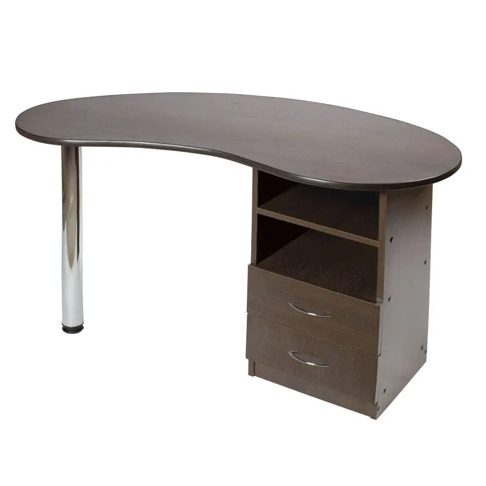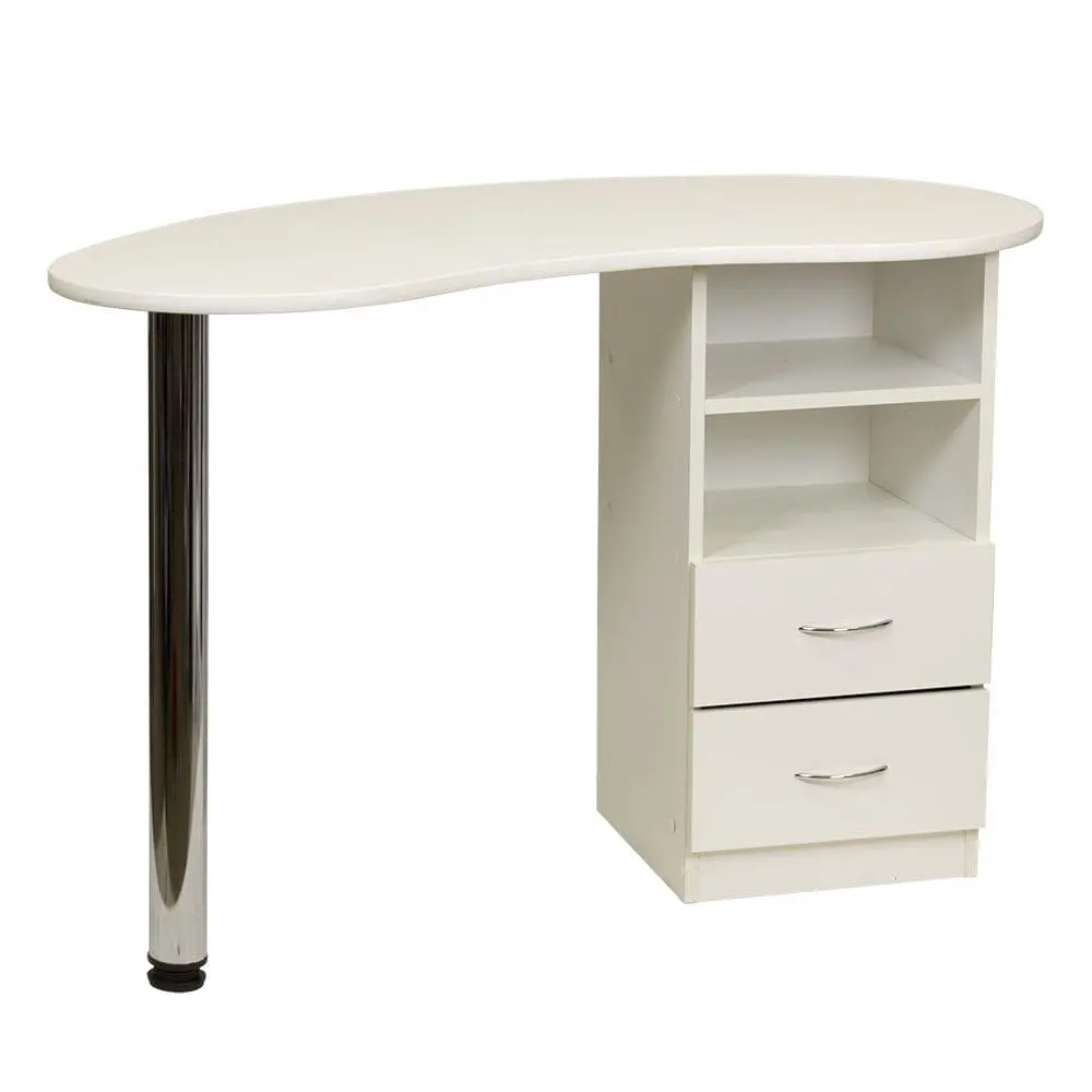 Маникюрный стол Катрин от производителя МЭДИСОН имеет удобные размеры и продуманную форму для правильной организации рабочего места мастера по маникюру. Для его производства применяются листы прочной ламинированной ДСП, поверхность которой устойчива к обработке дезинфицирующими средствами. Цвет ЛДСП можно выбрать из доступных 14 вариантов. Столешница с закругленными углами, со стороны специалиста плавный изгиб для удобства во время работы. Для защиты от механических повреждений столешница окантована гибким пластиком.