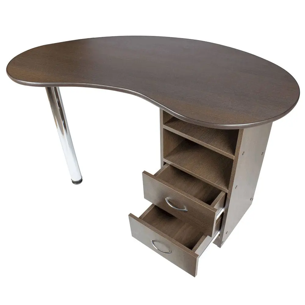 Работа мастера по маникюру связана с применением достаточно большого количества инструментов, приборов, расходных материалов, которые должны быть всегда под рукой. Для их хранения стол укомплектован тумбой с полочками открытого типа и двумя вместительными выдвижными ящичками. Благодаря удобным размерам столешницы некоторые рабочие принадлежности можно установить непосредственно на ней, например, демонстрационную подставку с лаками, ультрафиолетовую камеру. Интернет-магазин нашей компании предлагает Вам купить маникюрный стол Катрин со встроенной вытяжкой или без нее. Врезная вытяжка предназначена для поглощения пыли и мелких частиц, образовавшихся во время обработки ногтевой пластины.