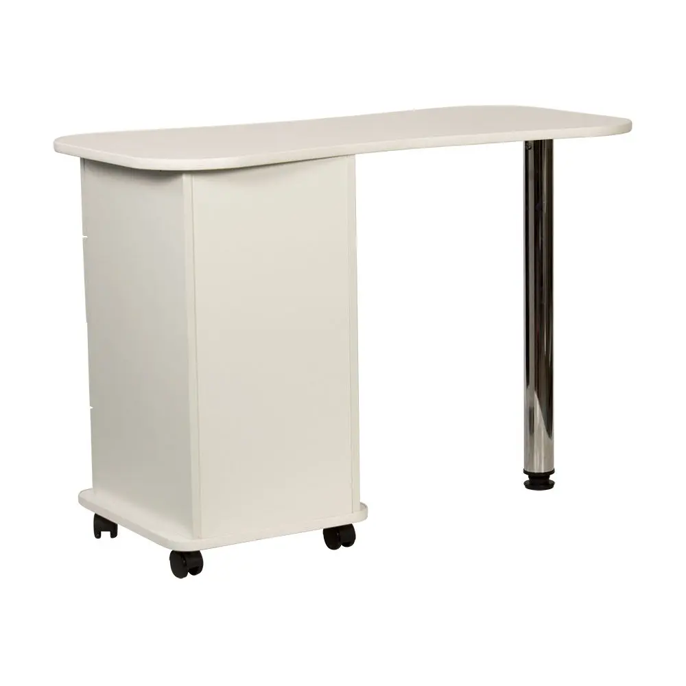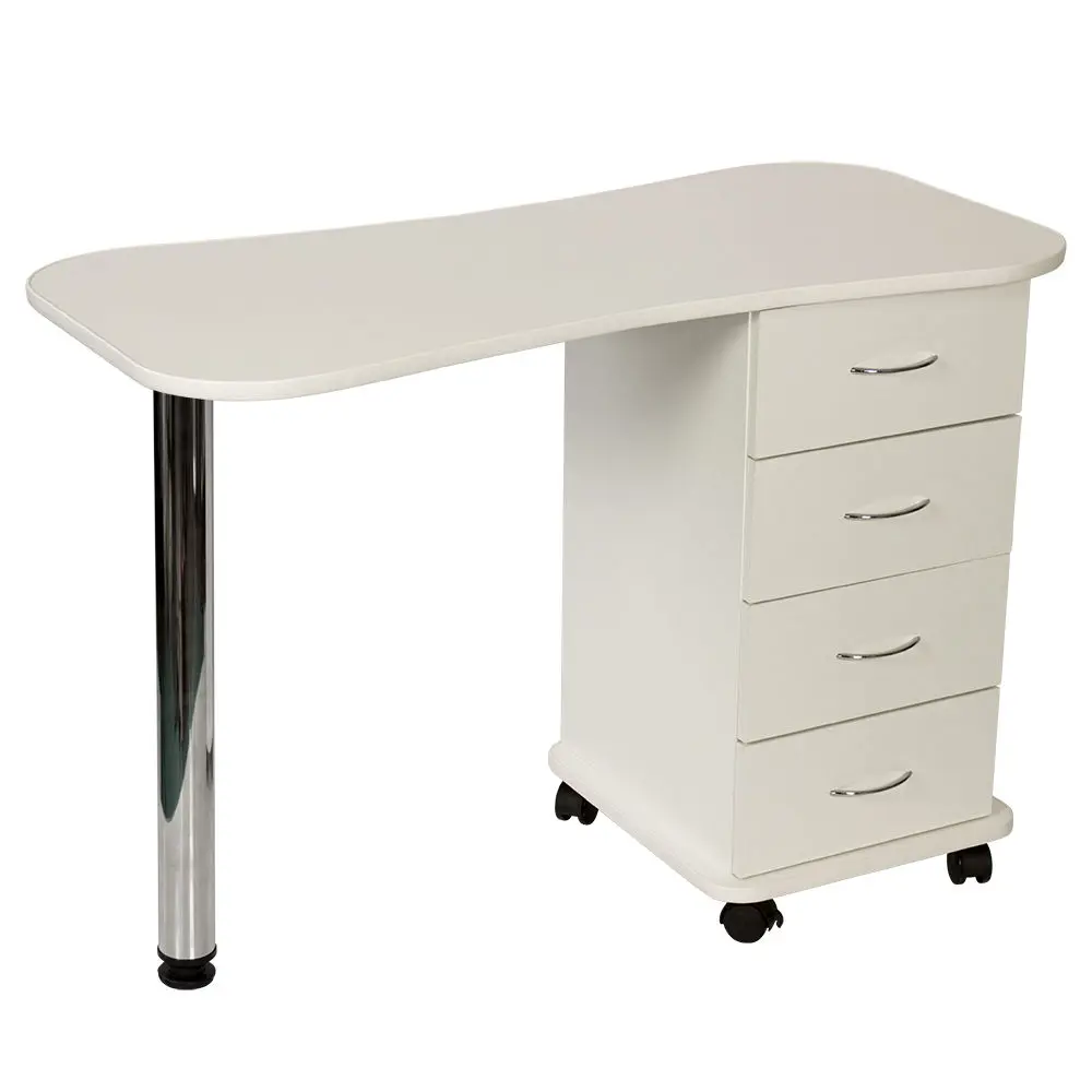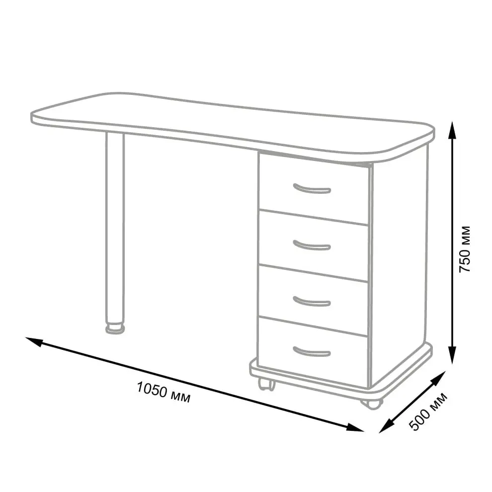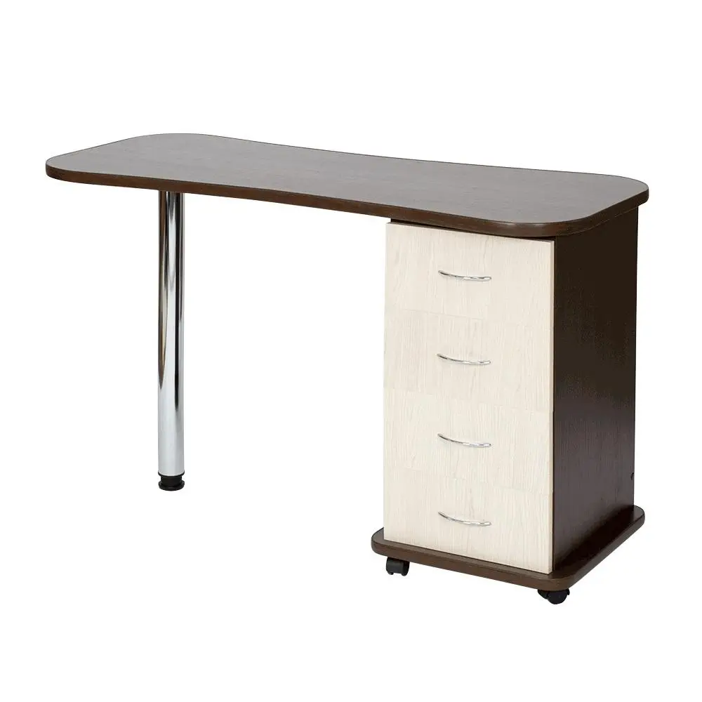 Функциональный и практичный стол маникюрный Эсти от производителя МЭДИСОН. В комплектацию входит столешница, тумба на колесах и хромированная ножка на подпятнике. Для производства данного стола применяется качественный материал – ЛДСП, поверхность которого устойчива к воздействию влаги, косметических и дезинфицирующих средств. Вместительная тумба закрытого типа с четырьмя удобными выдвижными ящиками. Дверки ящиков оснащены хромированными ручками.