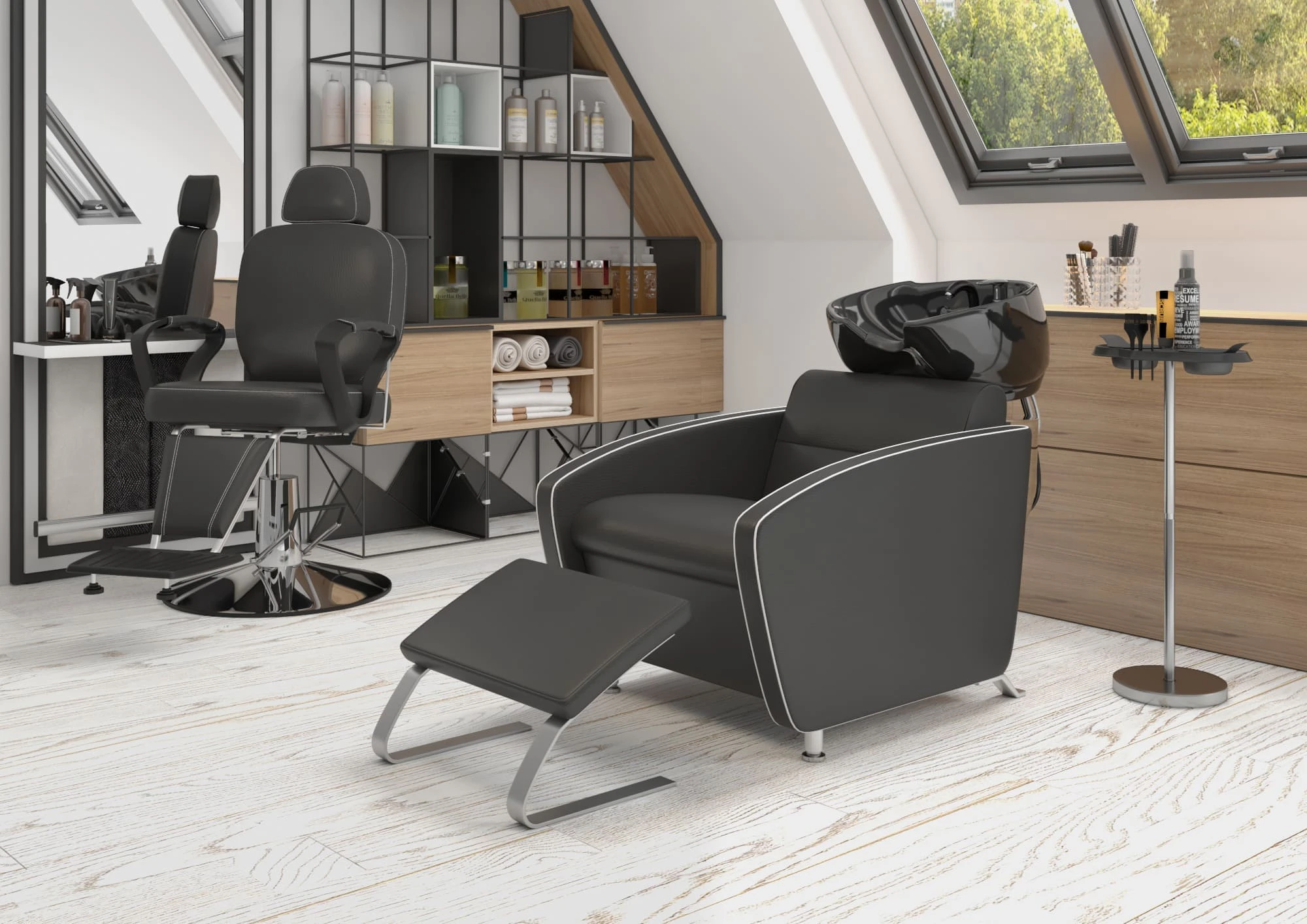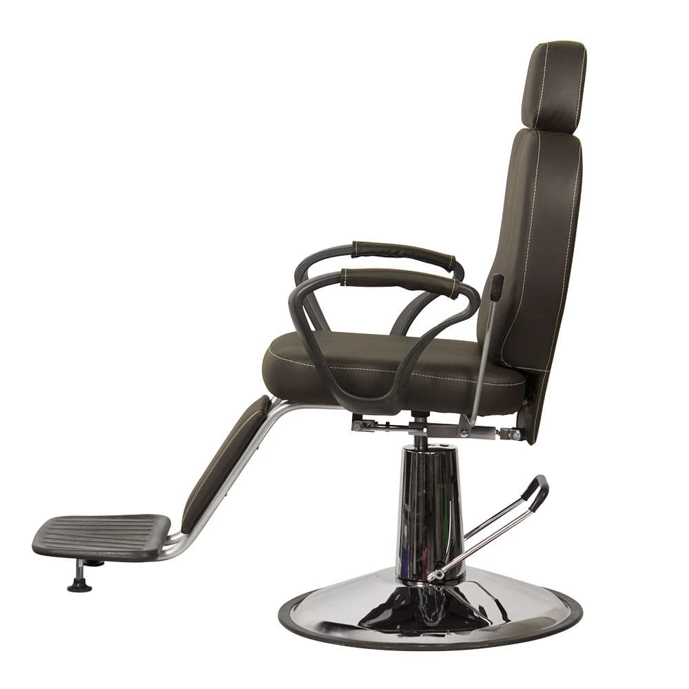 Продуманное дизайнерское решение позволяет оказывать услуги по уходу за волосами и бородой, а также делает кресло barber стильной составляющей интерьера. Для удобного расположения клиента любого роста предусмотрена подножка и выдвижной подголовник. По бокам сиденья установлены эргономичные подлокотники из прочного черного пластика. Подъем кресла осуществляется при помощи надежного гидравлического механизма, а для наклона спинки установлен газ-патрон.