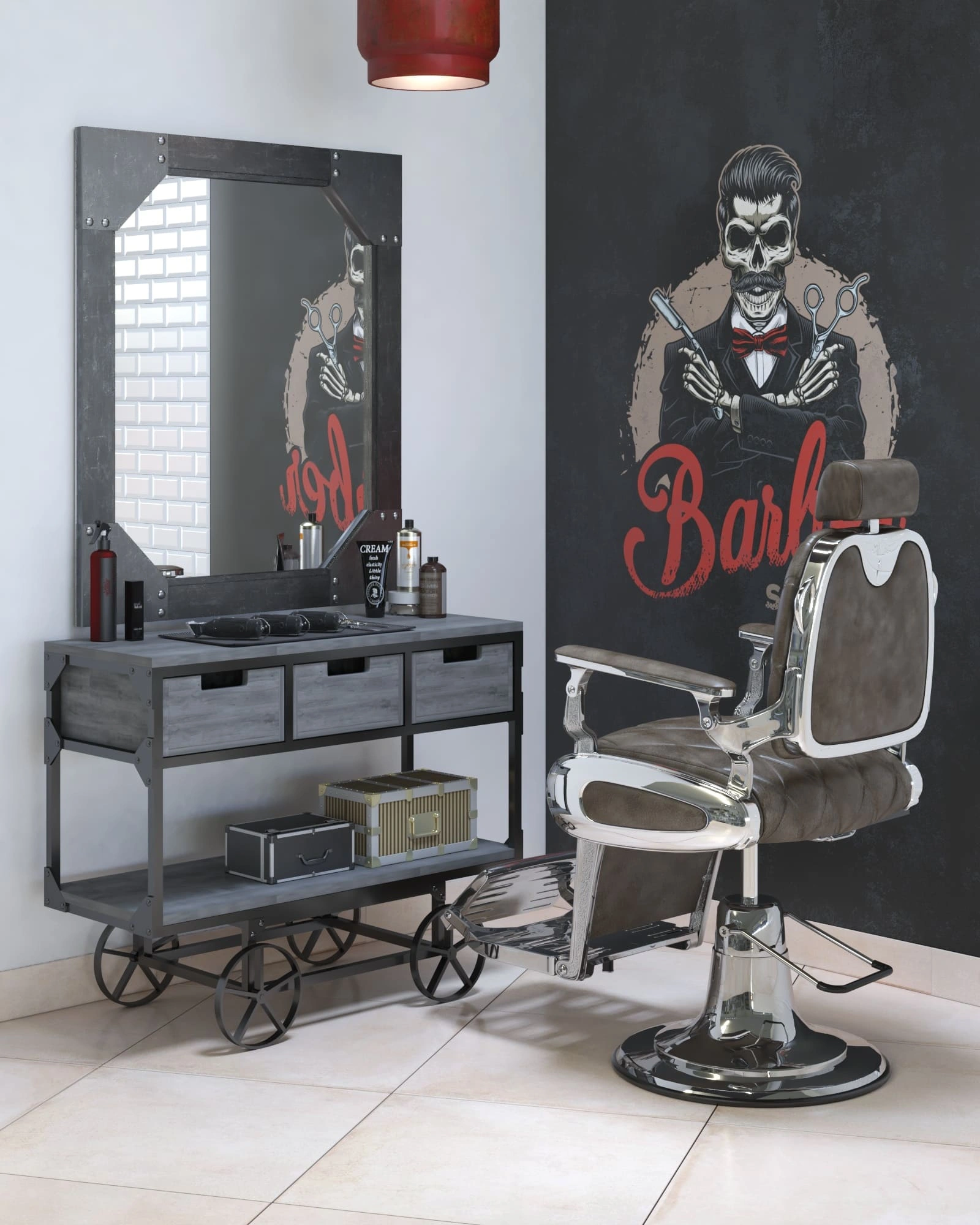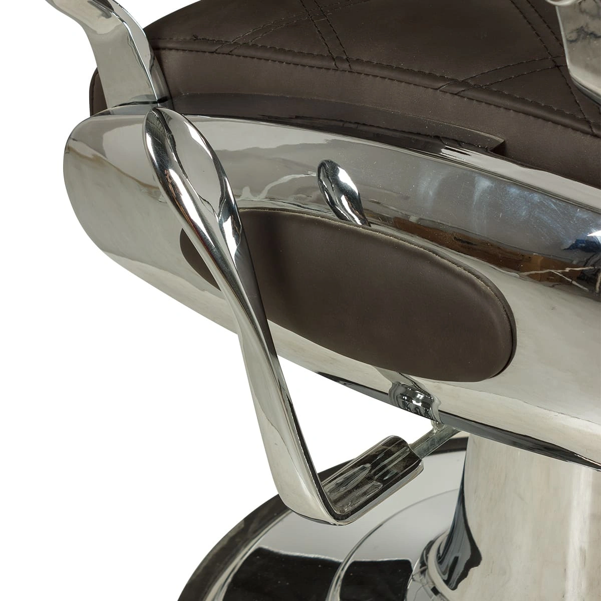 Чтобы обеспечить длительный срок эксплуатации, кресло выполнено из высококачественных материалов. Каркас мебели для барбершопа выполнен из прочного металла, установлен на надежную круглую базу из хромированной стали. Для предотвращения скольжения и царапин на полу, на основании предусмотрена качественная резиновая окантовка.