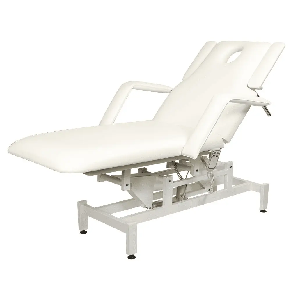 Комплектация: кушетка, подлокотники, съемная подушка, металлические элементы каркаса и основания, электропривод с двумя электромоторами и дистанционным пультом управления.