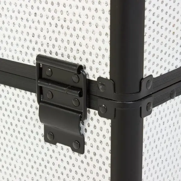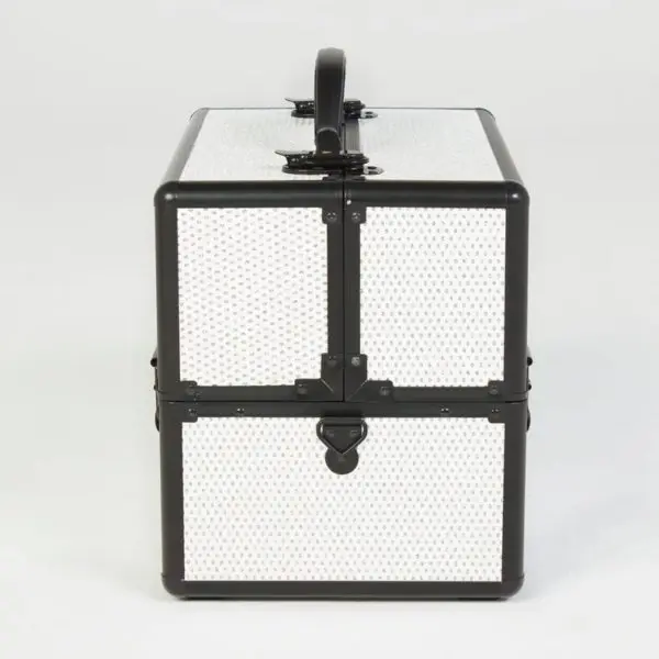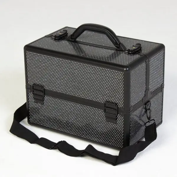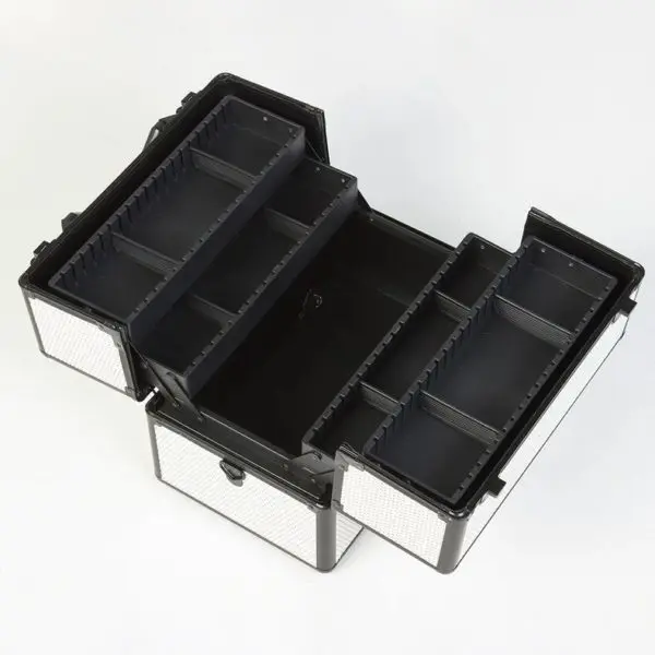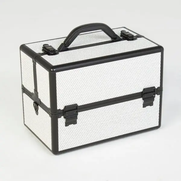 Студия визажиста выполнена из надежных материалов – пластик и алюминий. Два легких материала не утяжеляют конструкцию, обладают ударопрочностью и водонепроницаемостью. Благодаря этому мастер может не беспокоится за сохранность содержимого во время регулярных поездок.