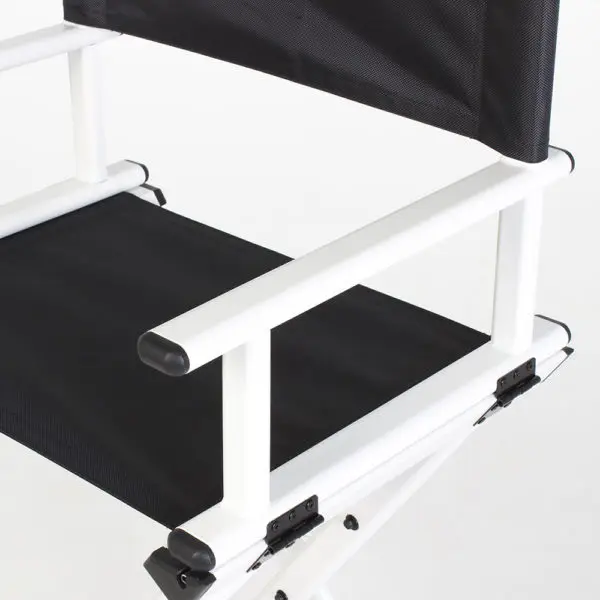 Каркас кресла для визажиста изготовлен из алюминия - этот металл имеет высокую прочность, но в тоже время достаточно легкий. Для изготовления спинки и сидения использована качественная ткань, которая не поддаётся растяжению. Тканевые элементы просты в уходе, легко снимаются для чистки или замены.
