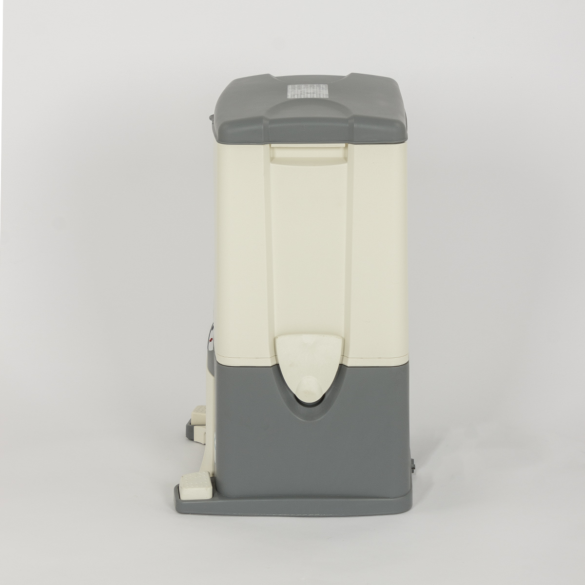 Стационарный пылесос – бокс, состоящий из двух отделов. Верхняя часть используется как обычное мусорное ведро. Открыть крышку можно нажатием ногой на педаль. Нижний отдел отвечает за всасывание мусора на полу.