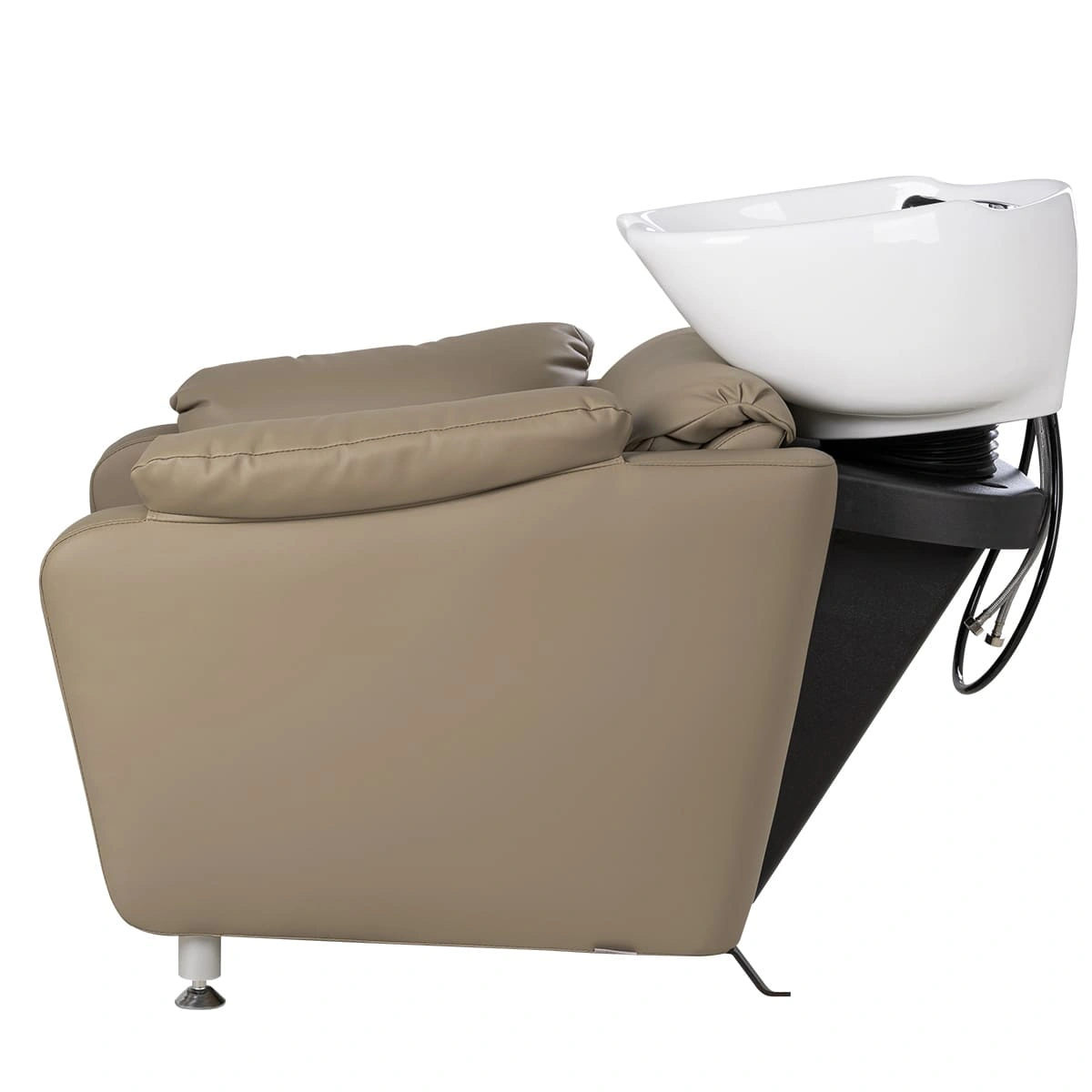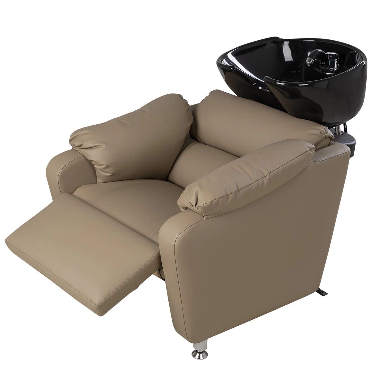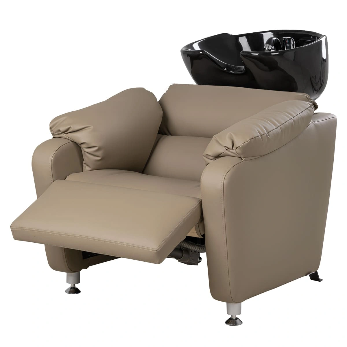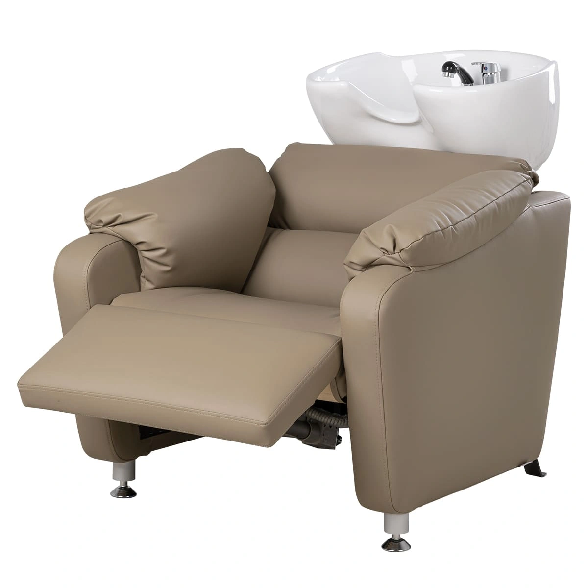 Кресло регулируется с помощью электромотора (можно подстроить под удобное положение клиента), раскладывается в полулежачее состояние. У мойки-реклайнера широкое сиденье с массивными мягкими подлокотниками, металлическое основание на противоскользящих подпятниках. Для ног предусмотрена практичная откидная подставка (регулируется с помощью пульта). Благодаря повышенному комфорту - любые, даже самые продолжительные процедуры станут для клиента настоящим отдыхом, что без сомнений придаст салону уникальность и эксклюзивность.