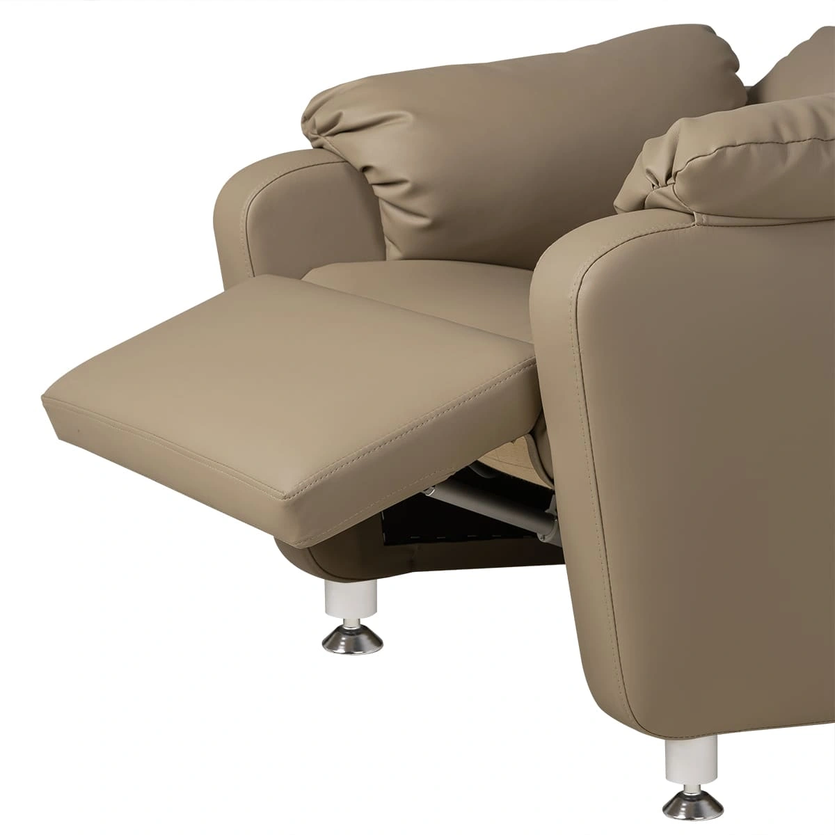 Мягкая обивка из влагостойкой качественной экокожи отлично переносит регулярную чистку и дезинфекцию. Наполнитель сидения – поролон повышенной эластичности, наполнители для подлокотников и спинки - периотек и синтепух. Материал быстро восстанавливает свою структуру и не позволяет мягким элементам деформироваться, сохраняя пышность на долгие годы.