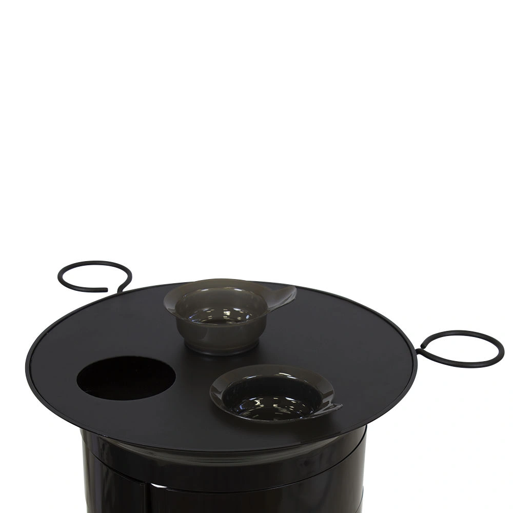 Верхняя крышка – также функциональный элемент оборудования. На поверхности предусмотрены отверстия для чаш и место для инструмента, необходимого во время рабочего процесса. Благодаря своей вместительности и двух держателей для фенов оборудование подойдет для обустройства нескольких рабочих мест. С помощью маневренных колесиков оборудование GiroCo можно с легкостью переместить в любое место.