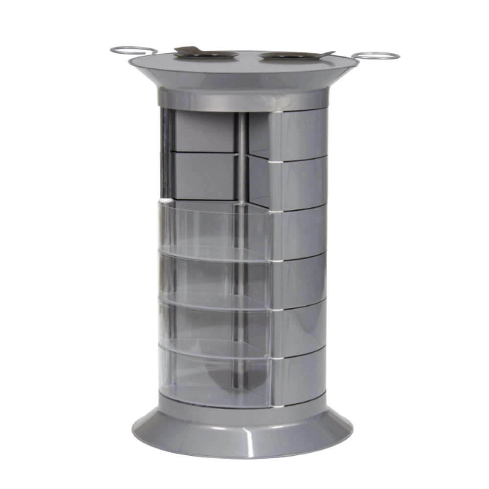 Парикмахерская тележка GiroCo Ofelia Plus имеет один вертикальный ряд прозрачных ящиков.