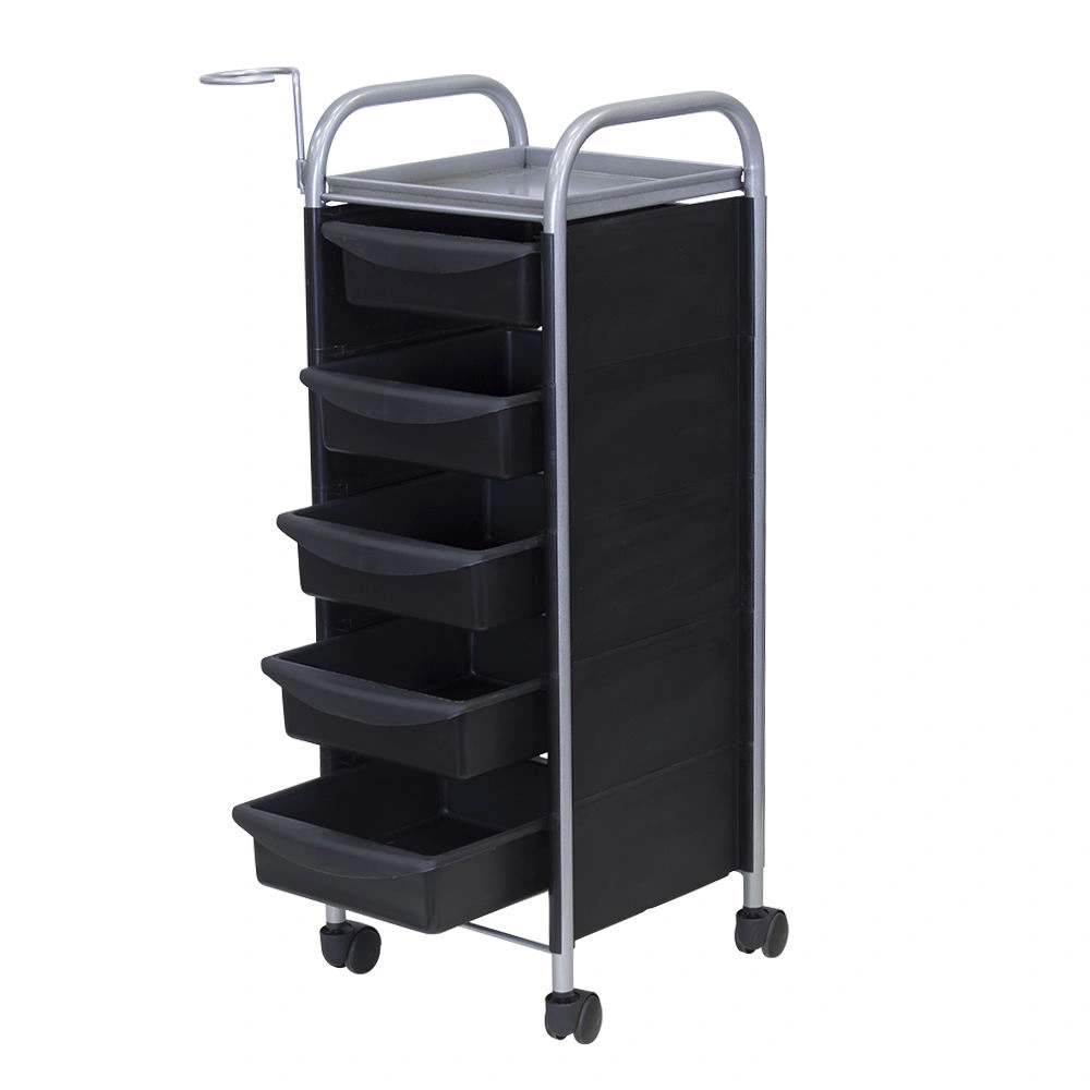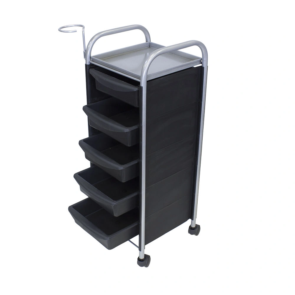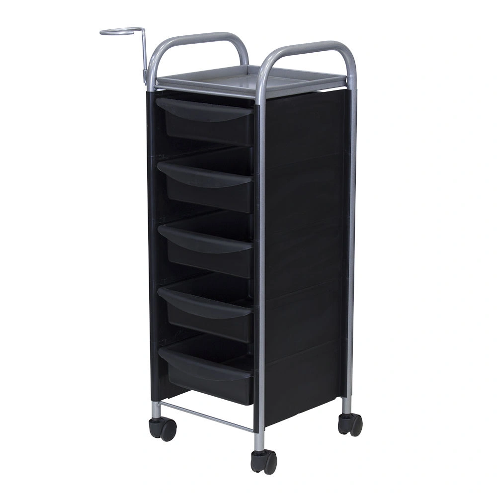 Купить тележку парикмахерскую М-02 можно с пятью вместительными выдвижными ящиками из ударопрочного пластика. Также для инструментов и прочих рабочих принадлежностей предусмотрена функциональная полочка. Для дополнительного удобства во время работы к каркасу прикреплен съемный фенодержатель. В нашем магазине парикмахерская тележка М-02 представлена в черном, сером, красном и белом цвете.