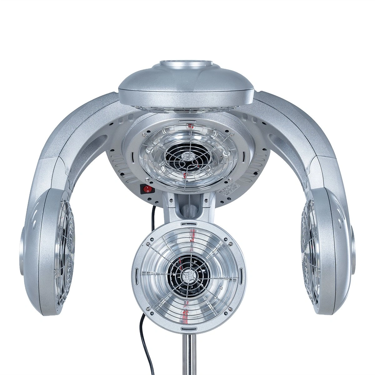 Работать с прибором очень легко, так как он оснащен удобной панелью управления c возможностью настройки программ вручную. В данной модели регулируемая высота, основание с маневренными колесами, пять инфракрасных ламп, вращающихся вокруг оси.