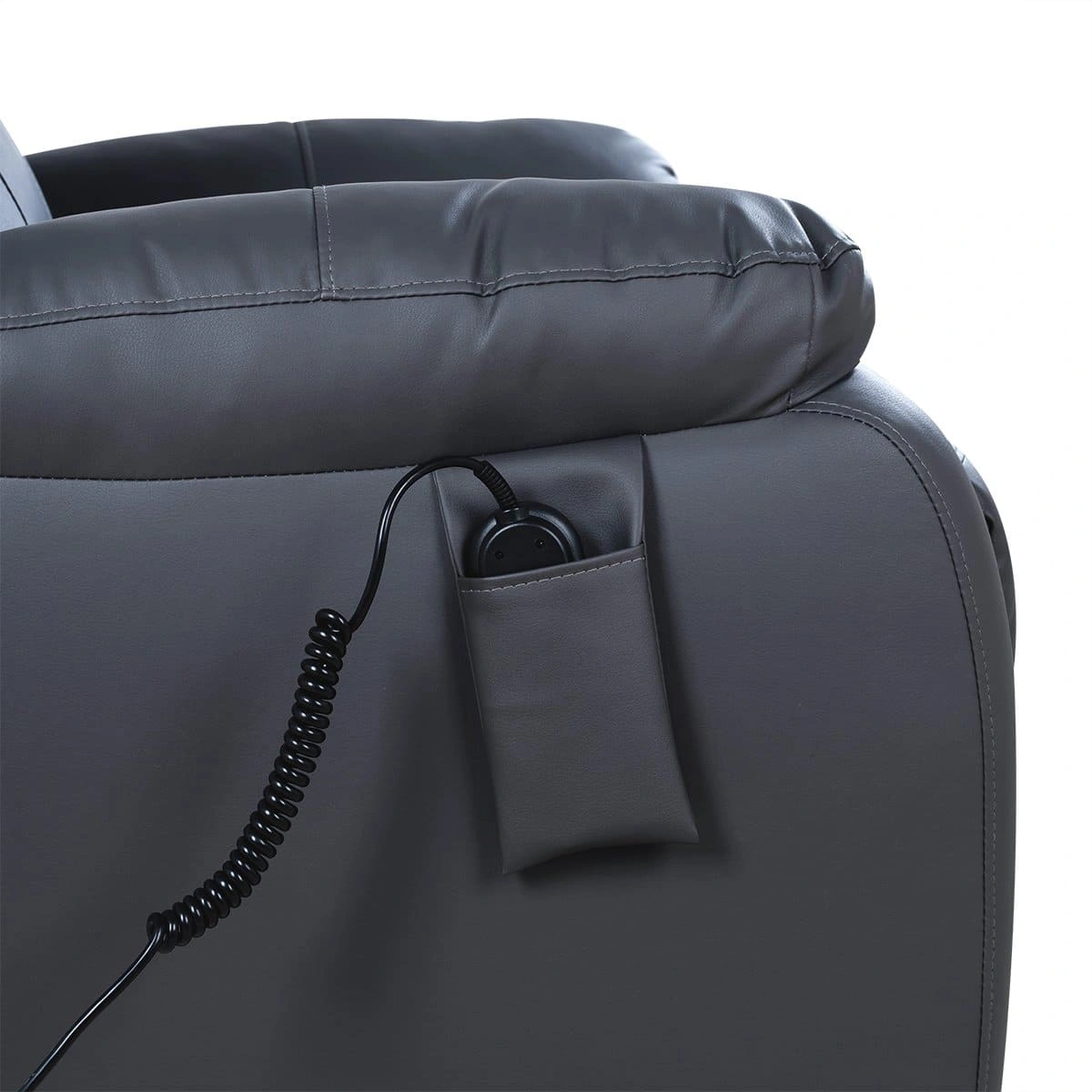 Педикюрное оборудование оснащено широким сидением с массивными мягкими подлокотниками. Спинка педикюрного кресла – двойная подушка. Для удобства ног посетителей предусмотрена подставка, положение которой можно менять в зависимости от процедуры. В подлокотнике расположен выносной пульт управления, у которого возможны следующие варианты регулировок: