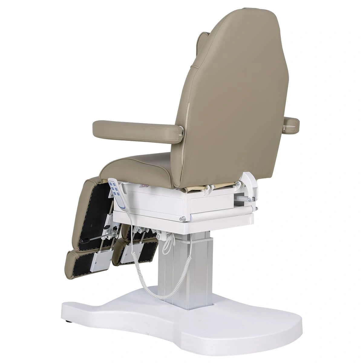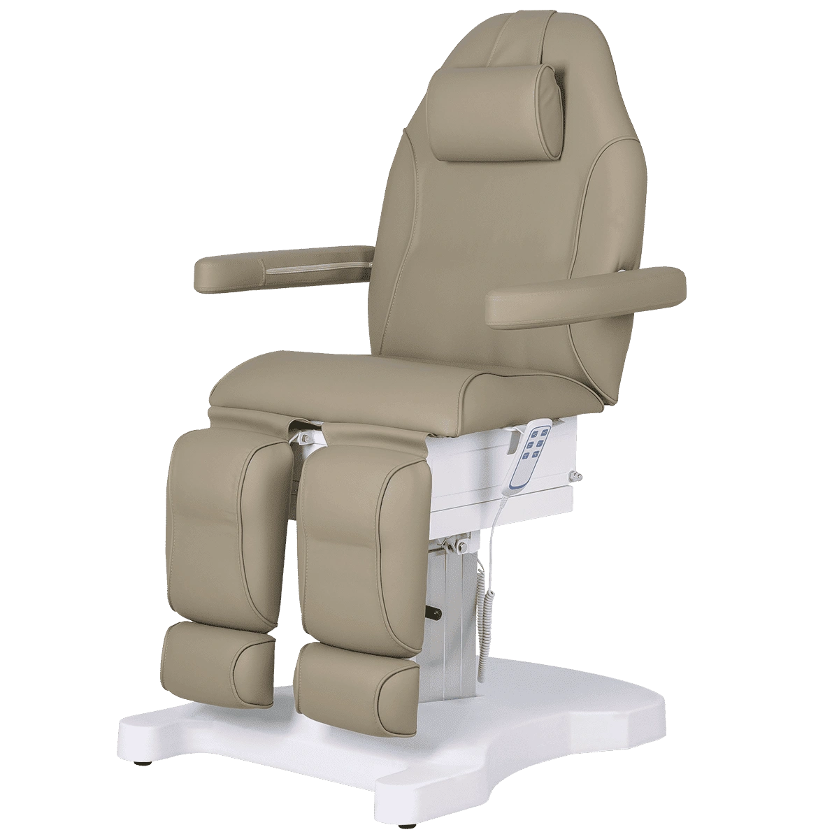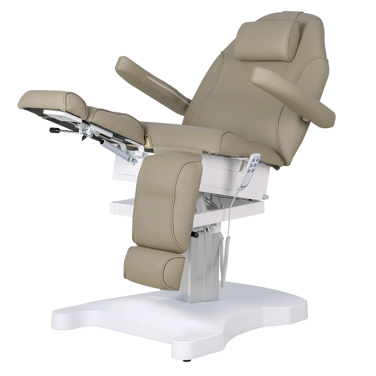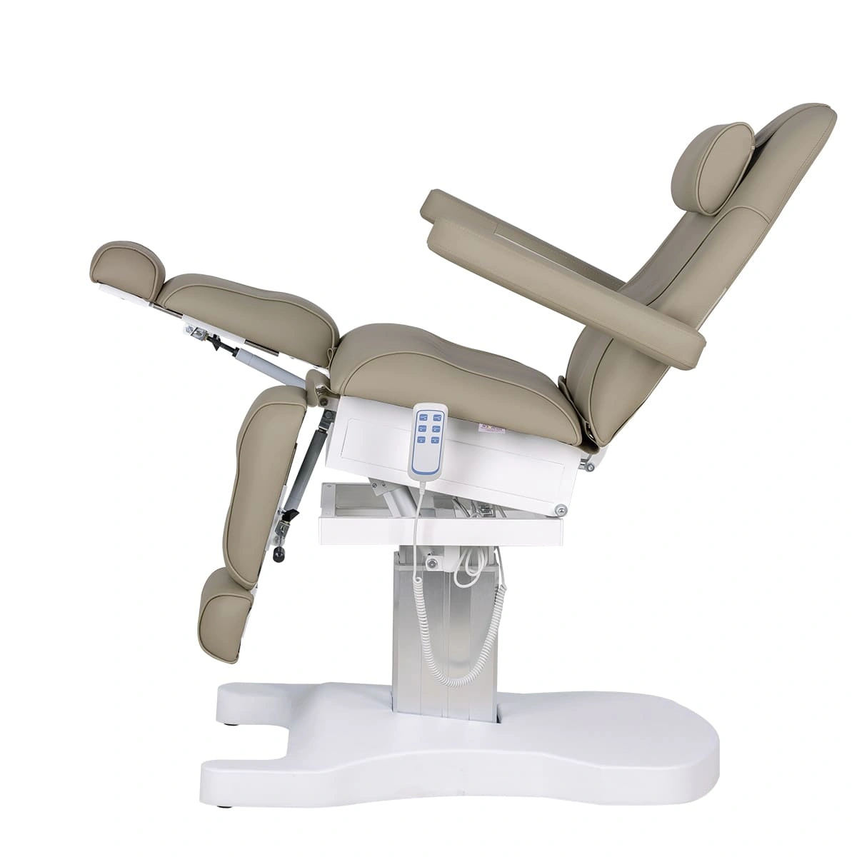 Педикюрное кресло Шарм-04 на колонне, 3 мотора гармонично сочетает в себе инновационные технологии, современный дизайн и хороший функционал. В его комплектацию входит три мотора электрического привода, управление которыми осуществляется при помощи удобного, компактного пульта. Все механические детали аккуратно спрятаны в стильной серебристой колонне. Благодаря продуманной конструкции металлического каркаса и широкому основанию на подпятниках кресло сохраняет свою устойчивость под воздействием рабочих нагрузок в любом положении, предусмотренном регулировками. Пластиковая накладка на основании интересной формы подчеркивает дизайнерское решение. Купить педикюрное кресло Шарм-04 на колонне, 3 мотора можно для установки в любом подходящем помещении.