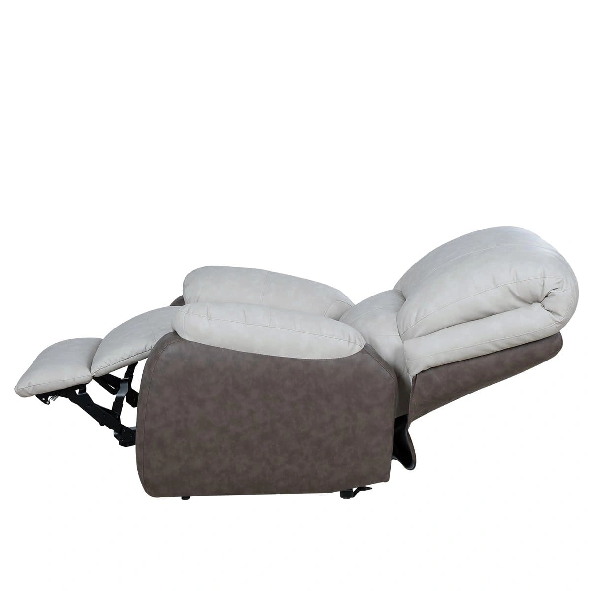Педикюрное оборудование оснащено широким сидением с массивными мягкими подлокотниками. Для удобства ног посетителей предусмотрена подставка, положение которой можно менять в зависимости от процедуры. Два мотора работают независимо, грамотно распределяя нагрузку между собой. Благодаря независимой работе моторов, можно устанавливать секции ног и спины на разном уровне. Механизм реклайнера легко трансформирует кресло в кровать.