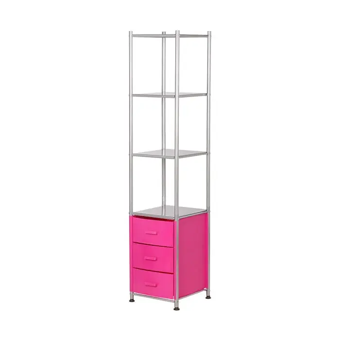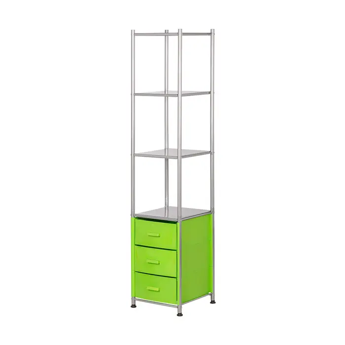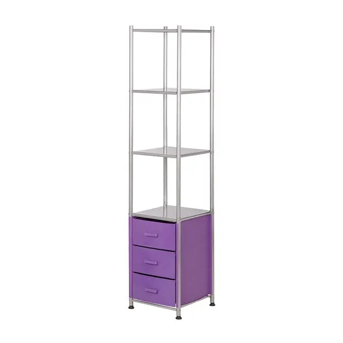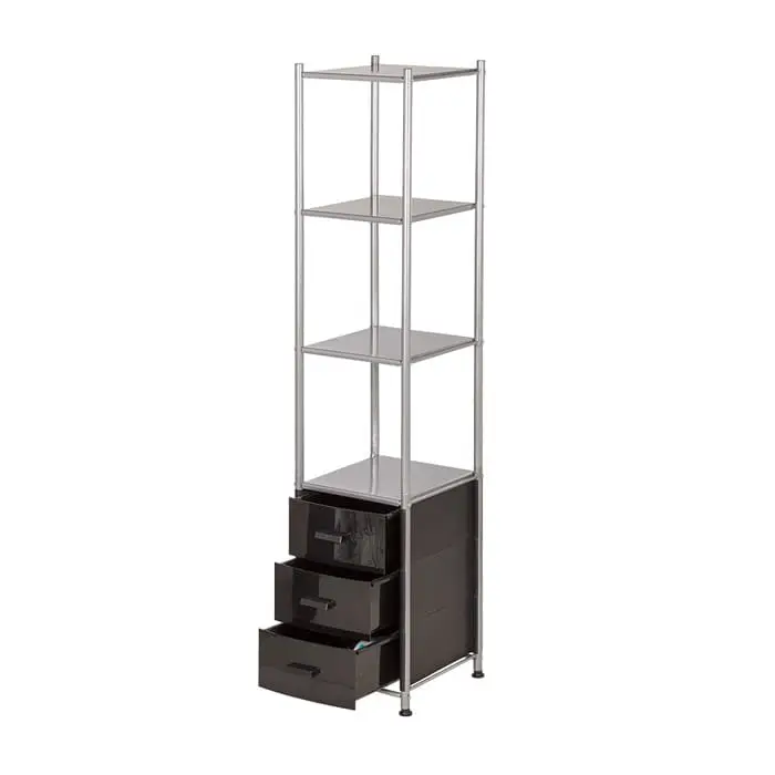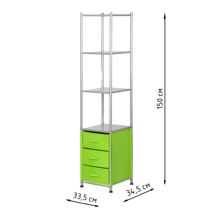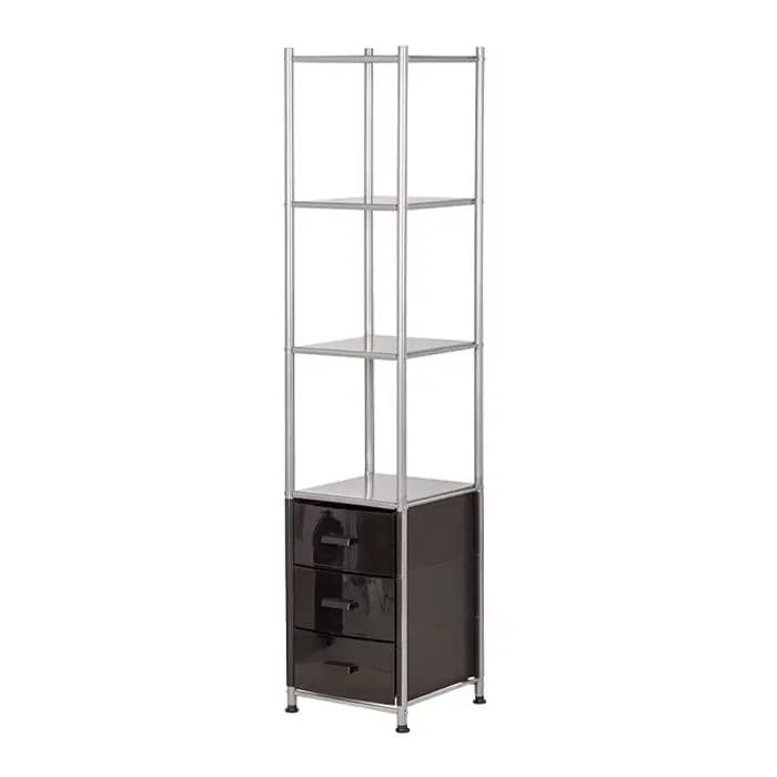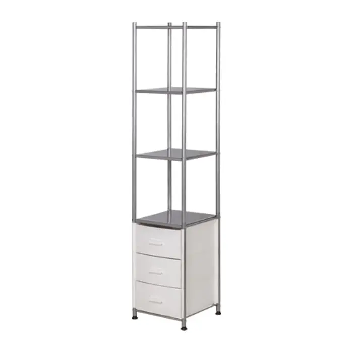 Комплектация: металлический каркас, 3 ящика, 4 открытые полки.