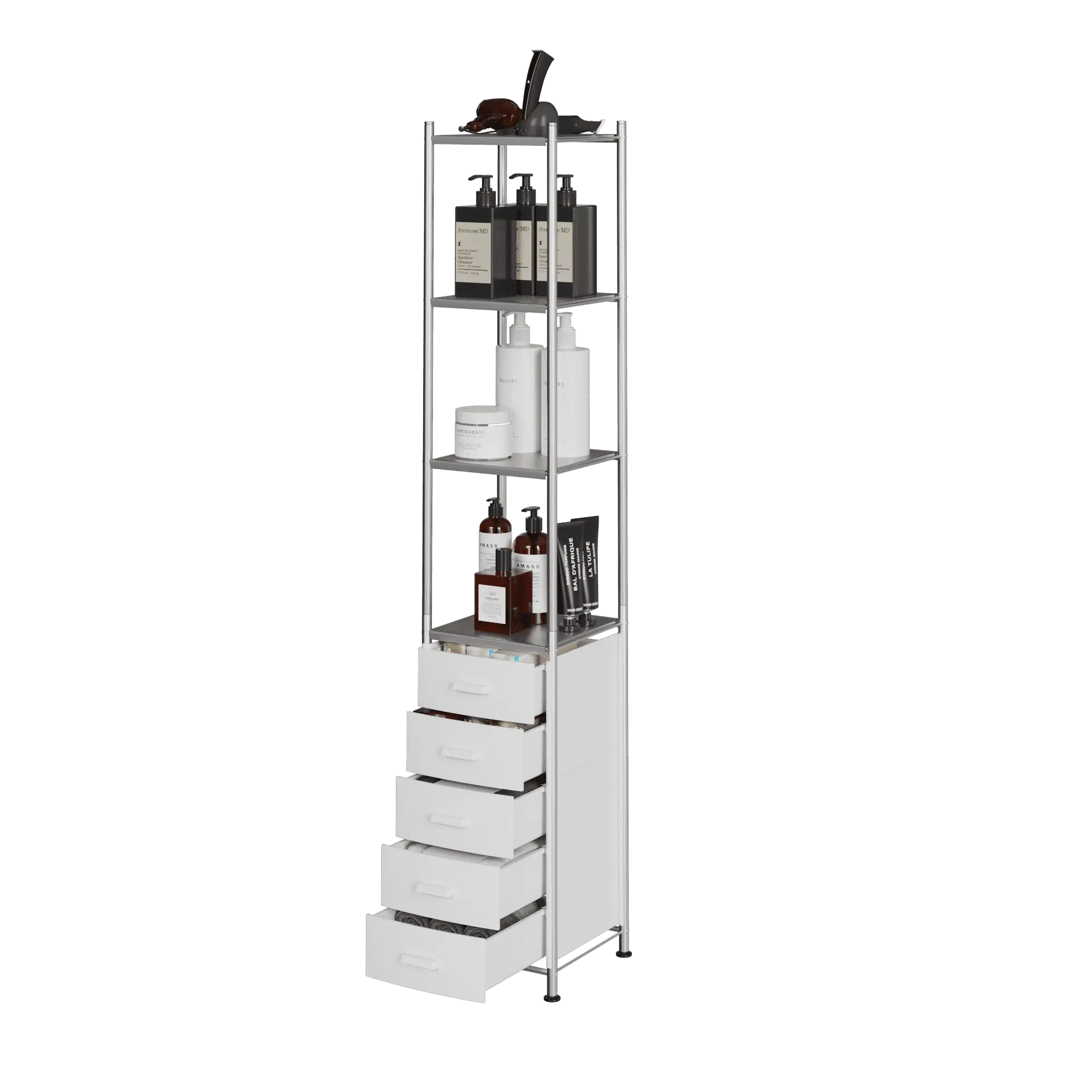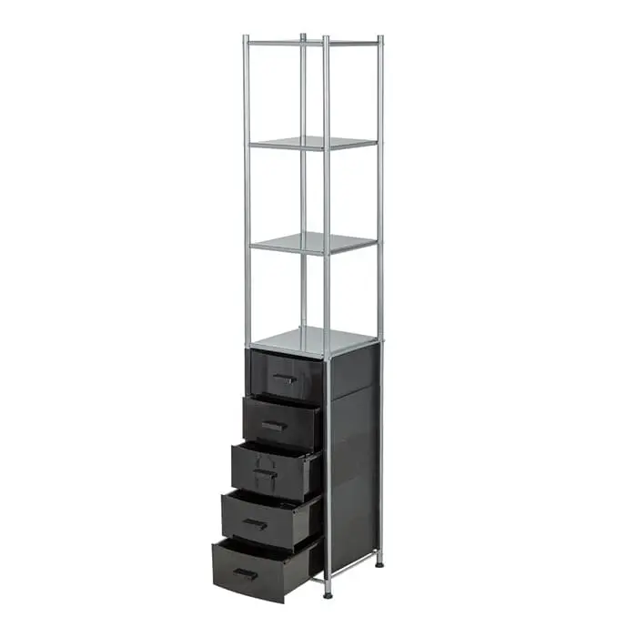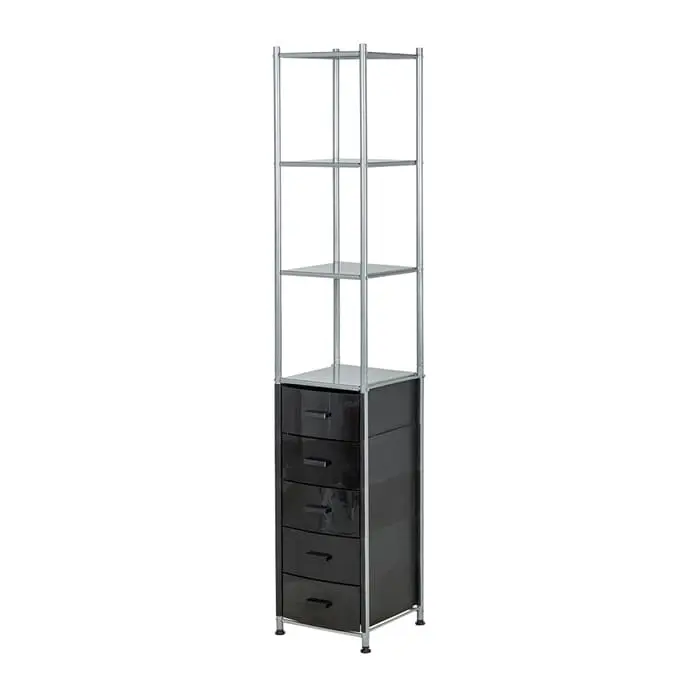 Комплектация: металлический каркас, 5 ящиков, 4 открытые полки.