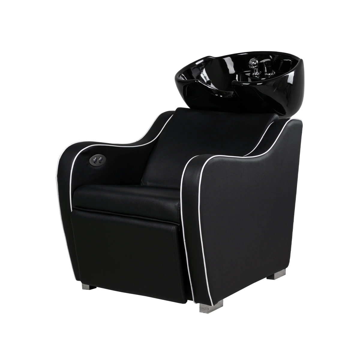 Парикмахерская электро-мойка МД-3043 комплектуется удобным креслом черного цвета и стильной вышивкой, профессиональной керамической раковиной черного цвета и сантехническими приборами. Глубокая раковина удобна для мытья волос разной длины. Специальный механизм позволяет устанавливать удобный угол наклона для каждого посетителя. Присутствует функция электрической регулировки подножки. Оборудование выполнено из качественной керамики. Прочный материал устойчив к влиянию косметических средств, не деформируется после регулярной очистки и дезинфекции. Устойчивость парикмахерского оборудования обеспечена стальным каркасом. Конструкция установлена на металлические ножки хром. Размеры мойки (ШхГхВ): 990х660х1280-1560 мм.